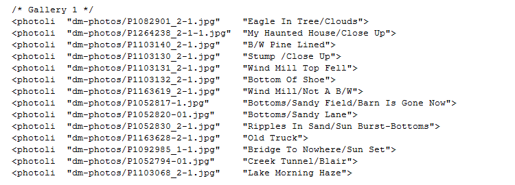 The details for each image are specified with a photoli tag. (The keyword photoli is short for